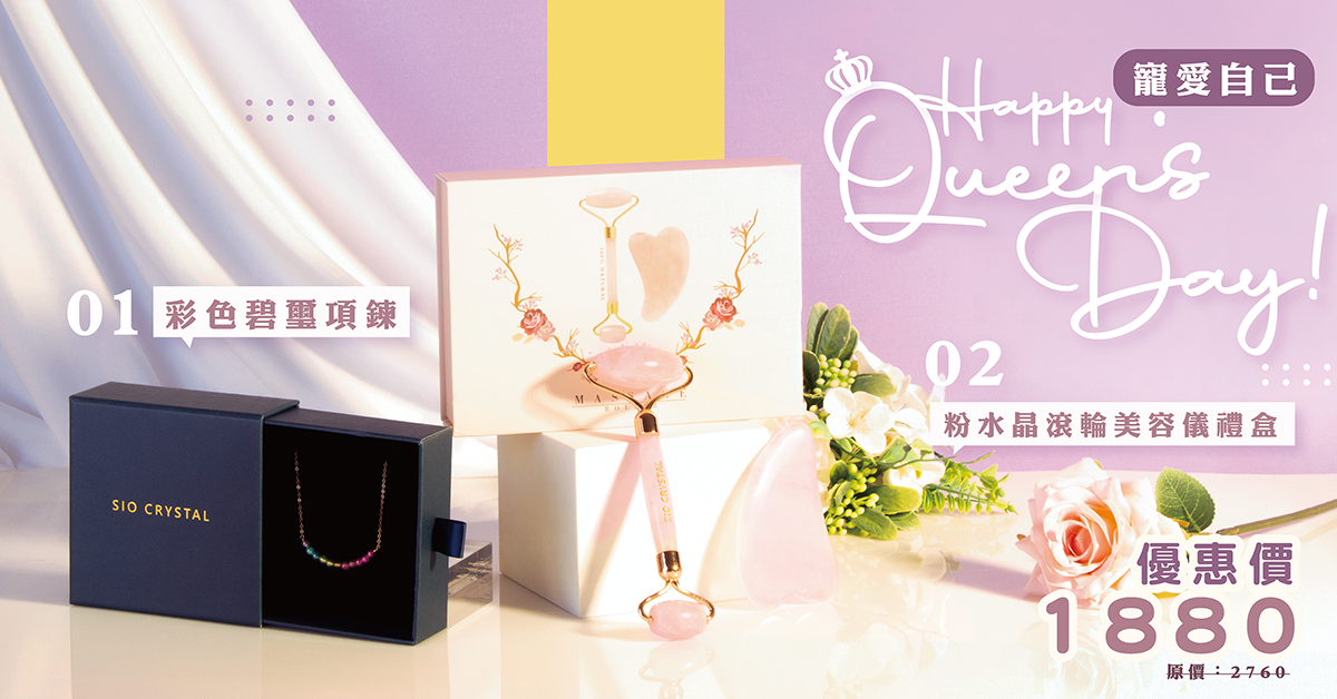 粉水晶滾輪按摩禮盒組+落入人間的彩虹(碧璽項鍊)