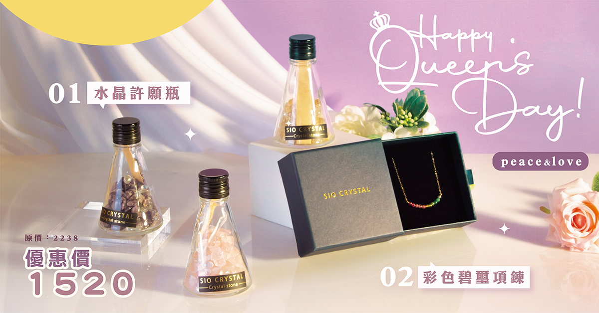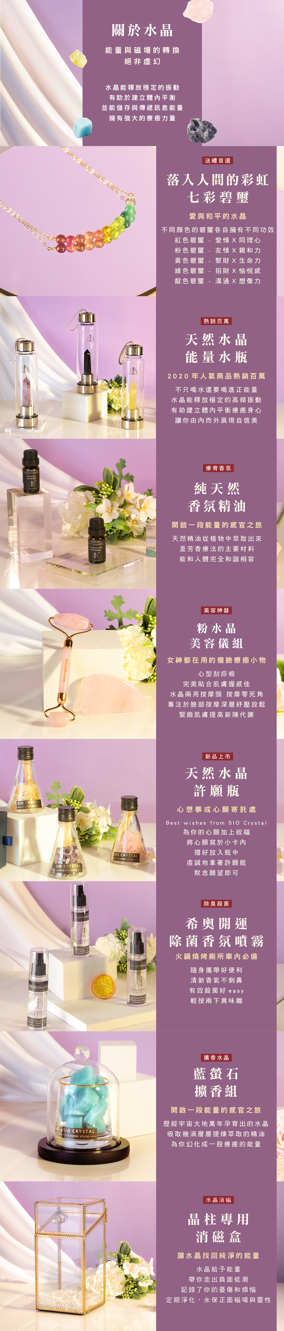 共粉水晶、黃水晶、紫水晶三款水晶可挑選