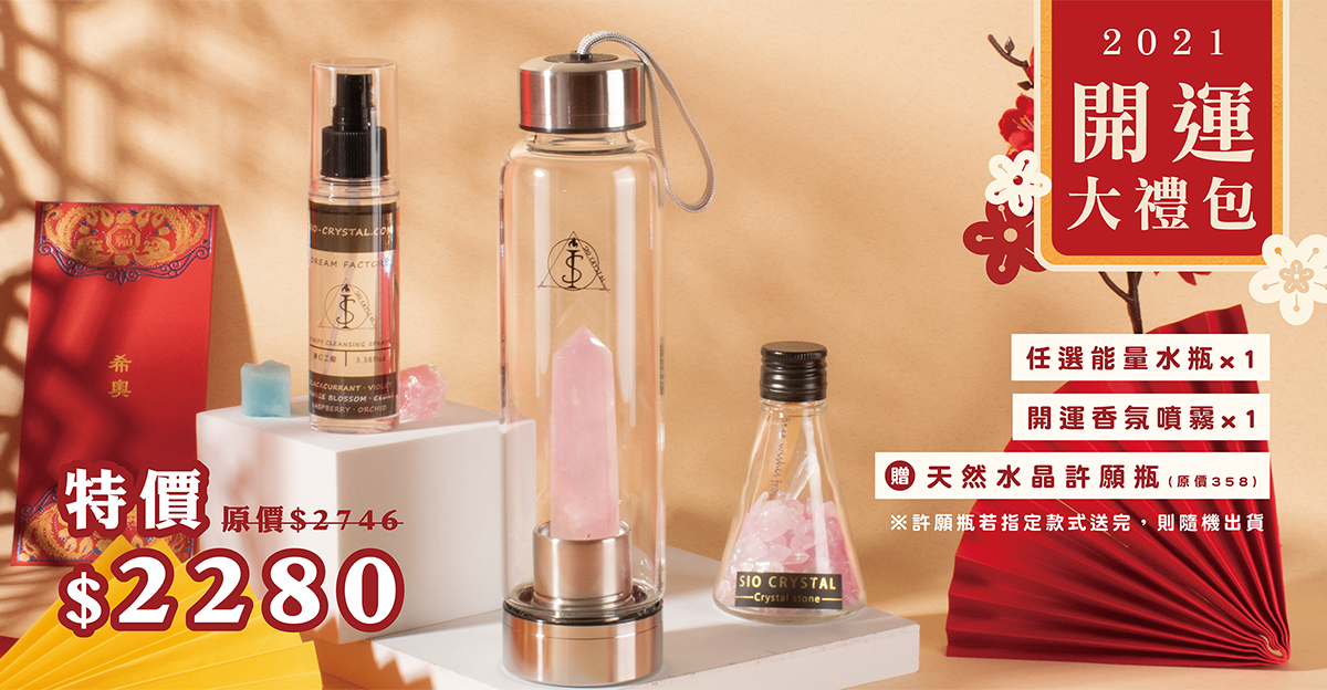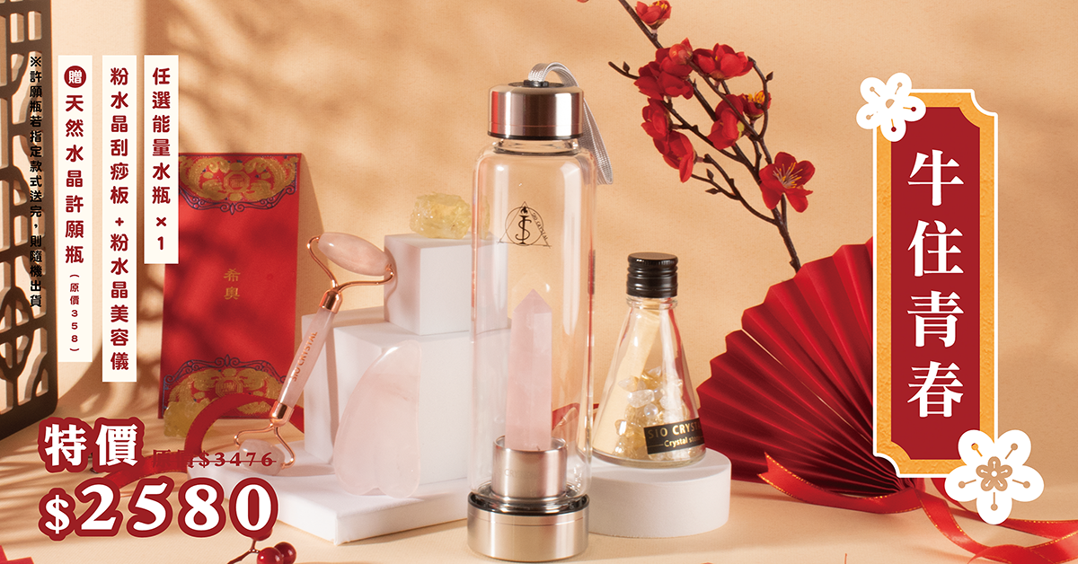水晶能量水瓶+粉水晶美容組+許願瓶