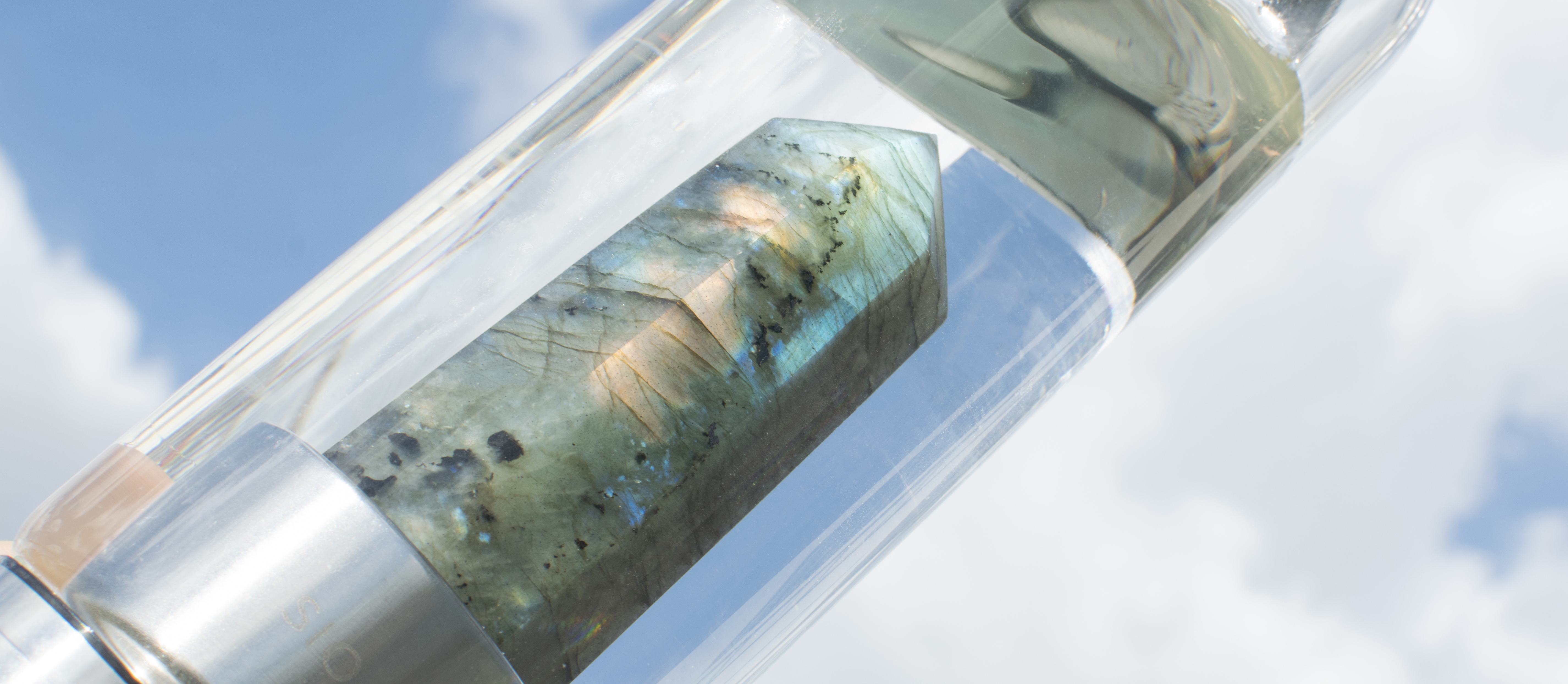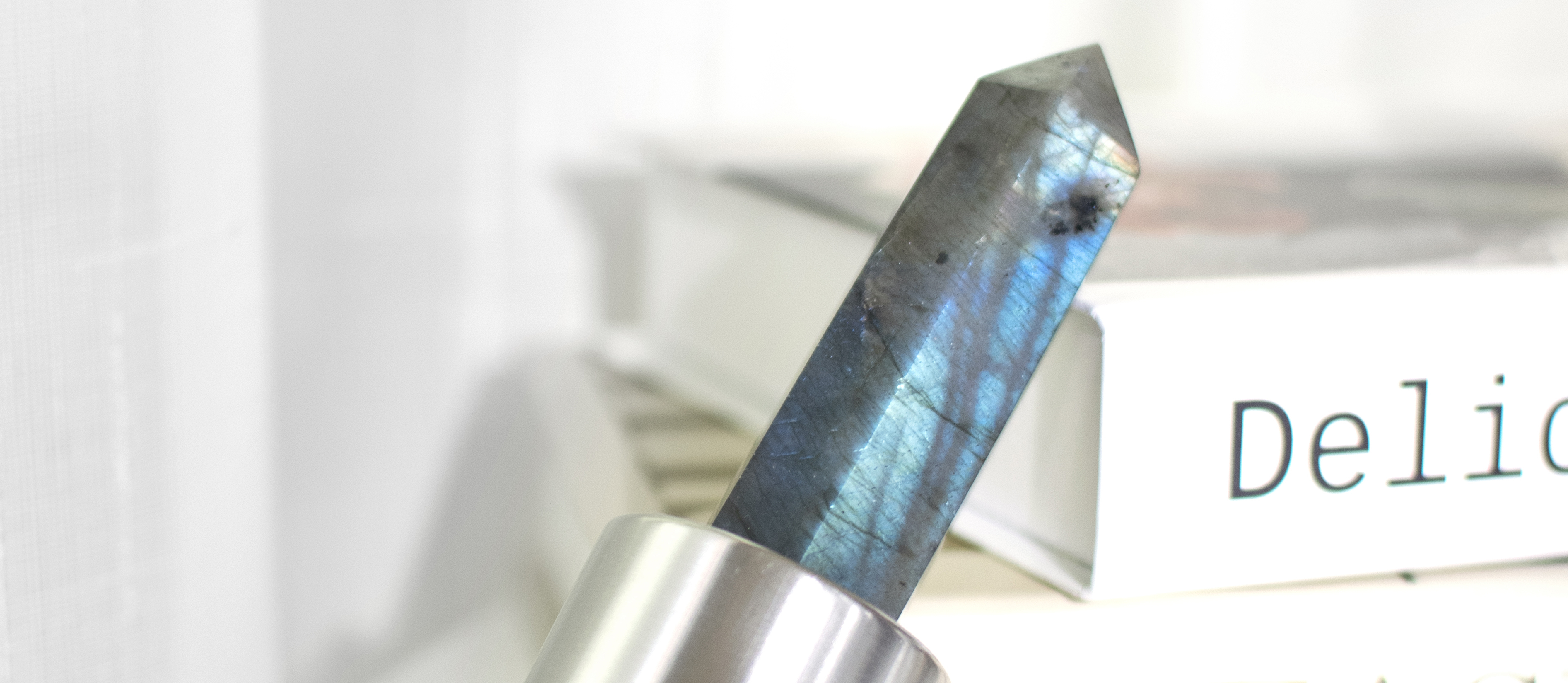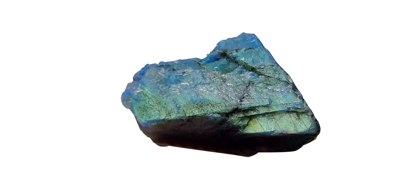 拉長石又稱光譜石,是少數對應到第八脈輪的水晶,因其閃現出像太陽的七彩光芒而得名,有極少數可用作寶石。對於經常需要加班者,可以佩戴拉長石,有助於在不知不覺中補充體力不易疲勞,可以藉其能量來貫穿撫慰,恢復精神;當運動、工作過度,肌肉、骨骼酸痛時,也可以用拉長石來按摩酸痛的部位,以減輕痛楚。拉長石也被認為是具有高度「聚財力」的能量寶石,極度適合生意人使用。