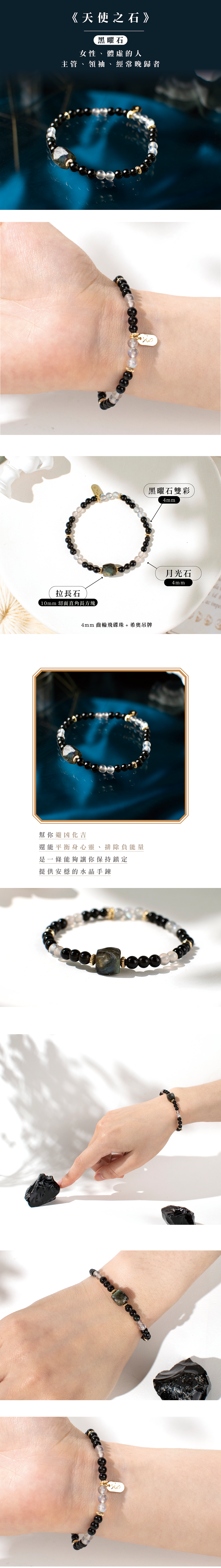 能量手鍊【天使之石】黑曜石月光石拉長石手鍊