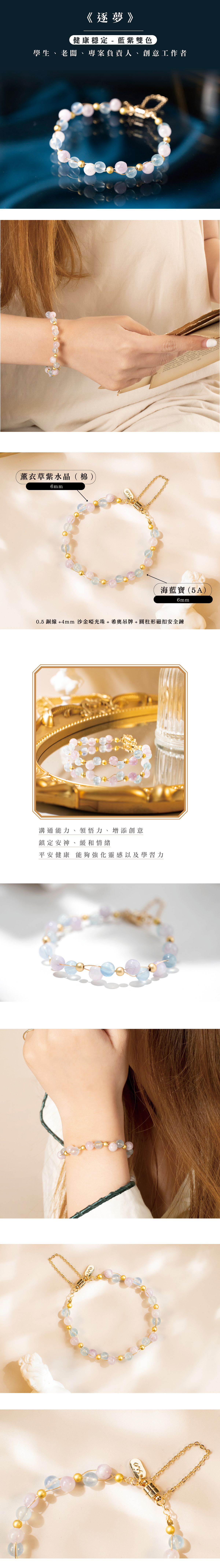 水晶手鍊【逐夢-健康穩定】海藍寶紫水晶手鍊