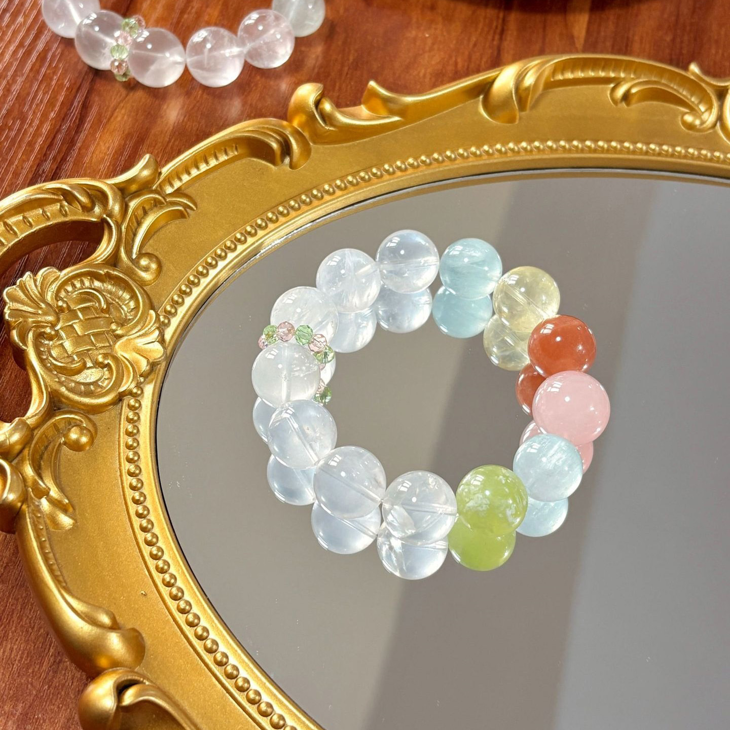 「SIO Crystal 莫奈花園」「多寶串水晶手鍊」「大咪數設計款水晶」「療癒系彩色寶石」「白幽靈藍螢石功效」「藝術風格飾品」「全方位能量水晶」「增加創造力與靈感」