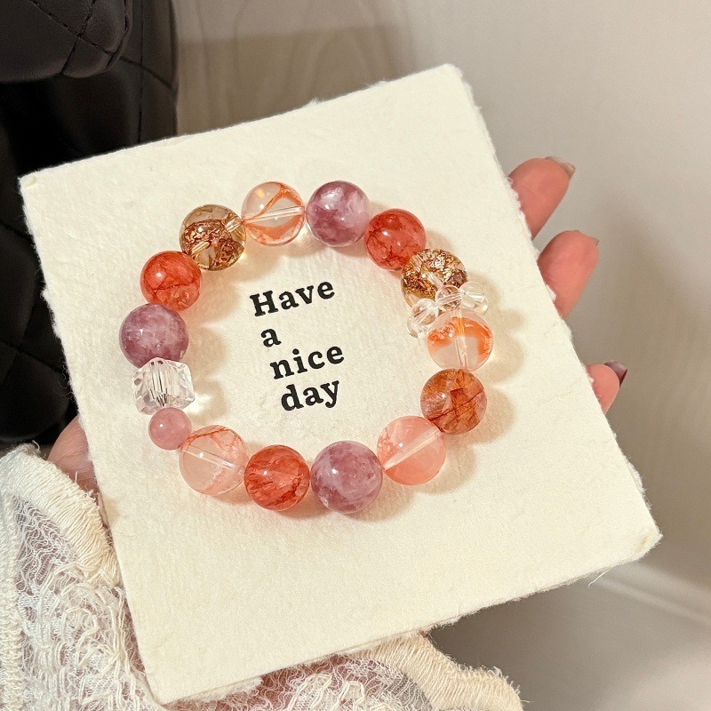 「紅膠花水晶手鍊」