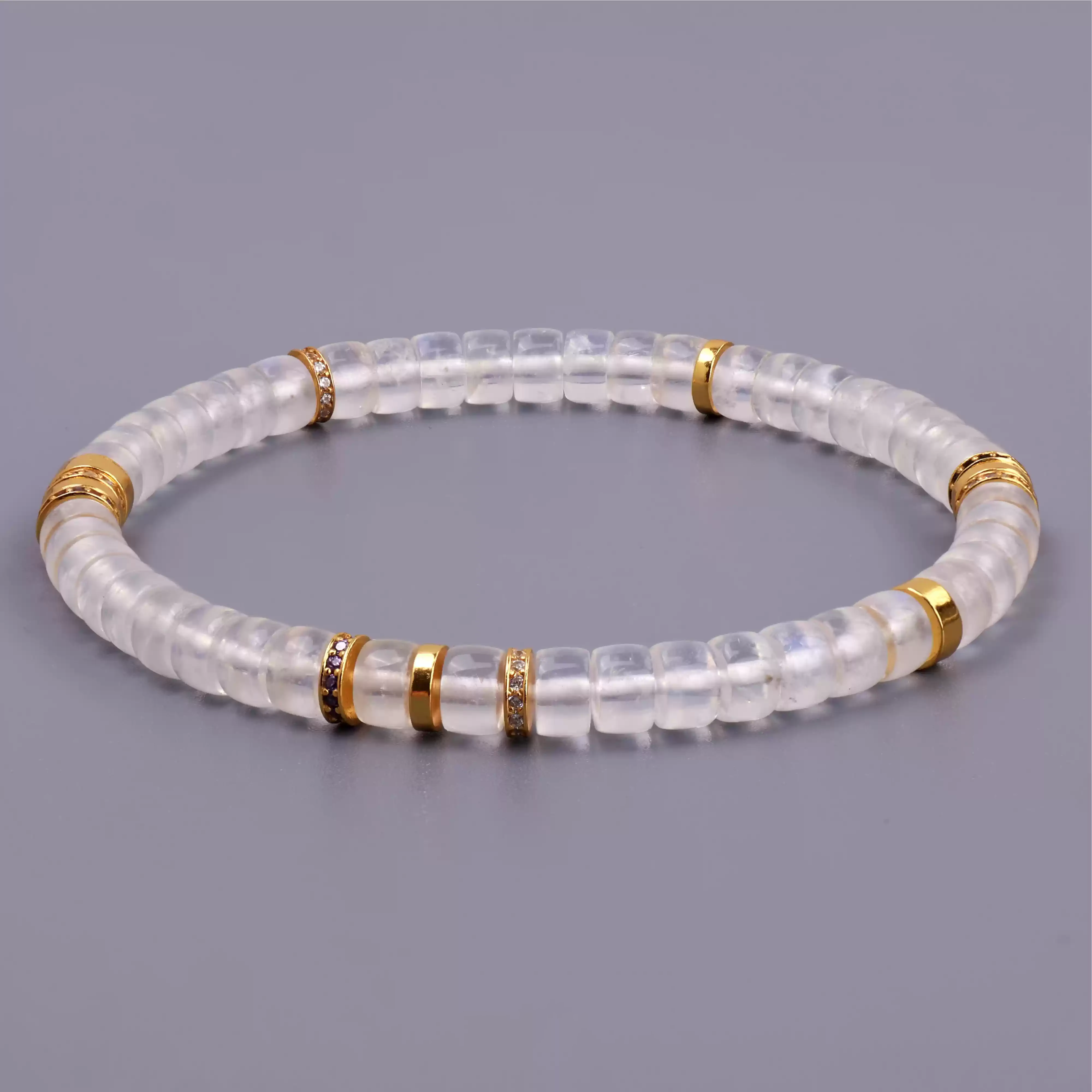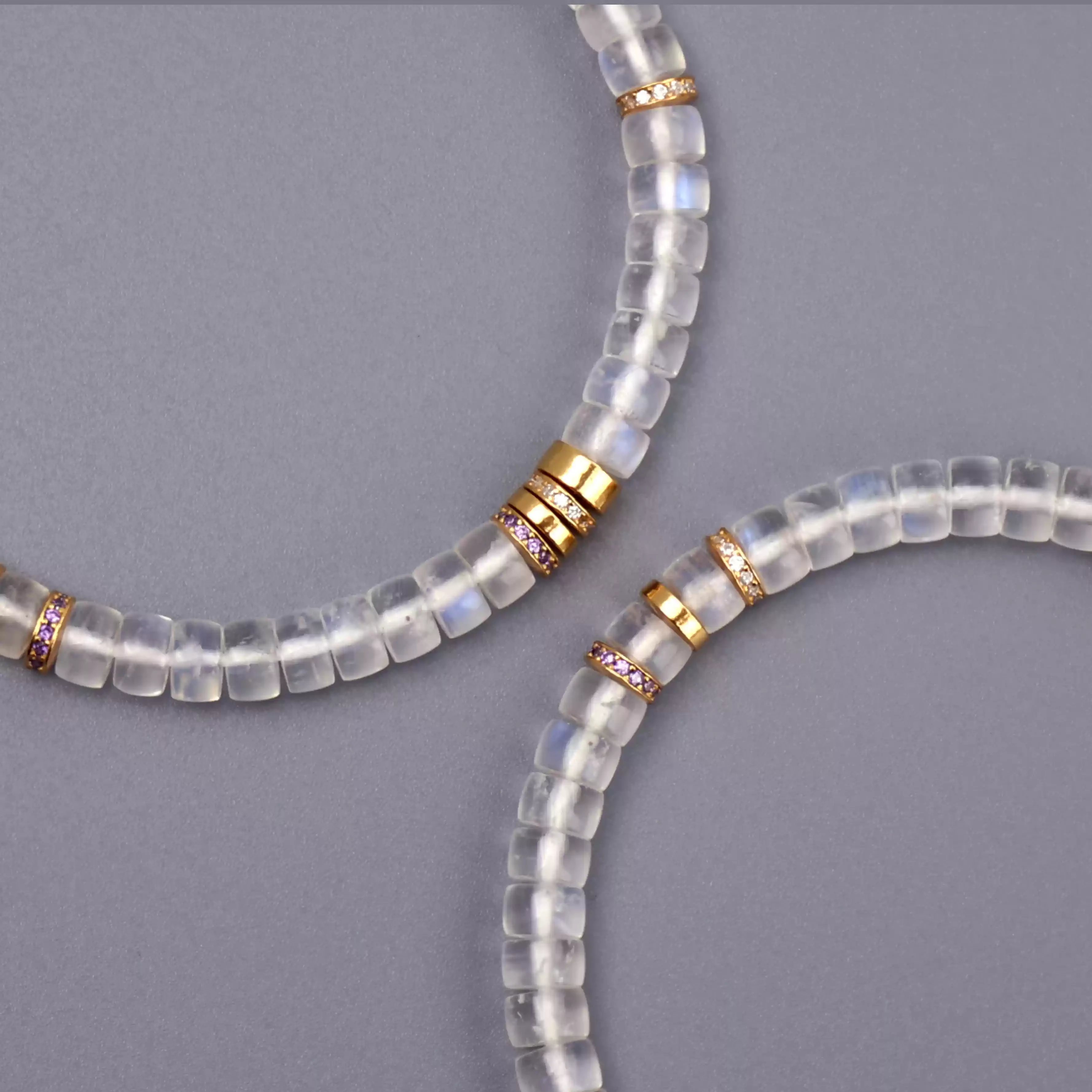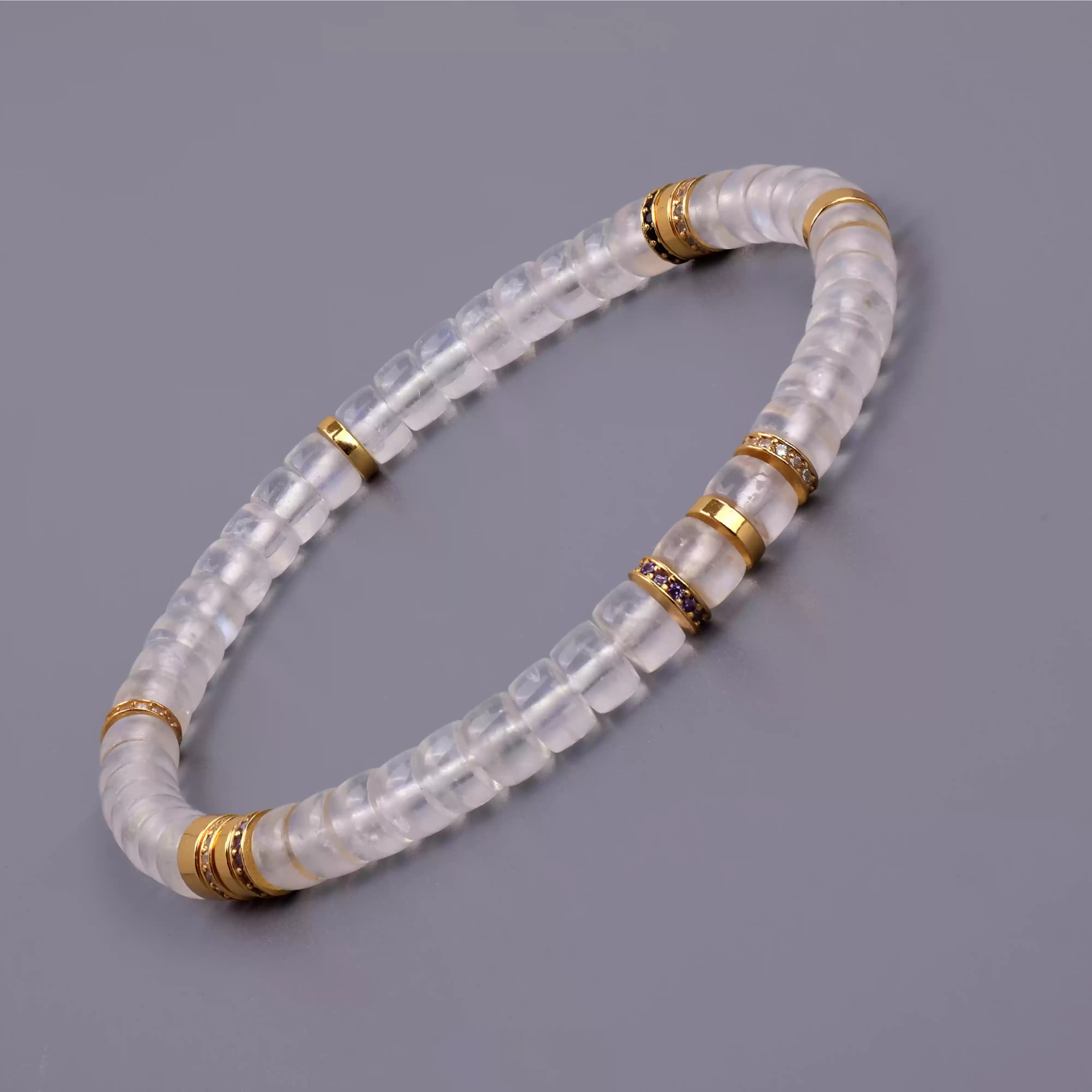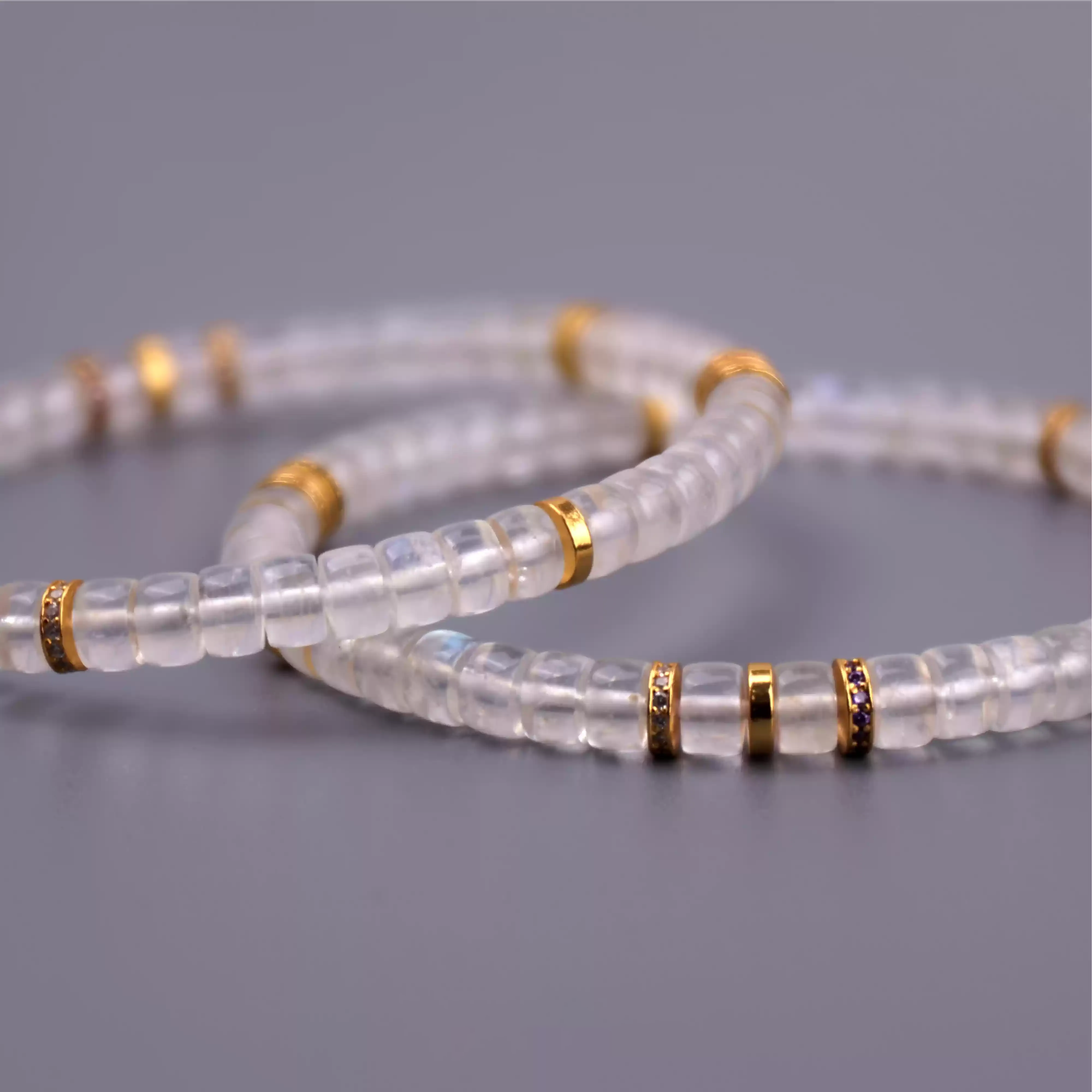 讓月光石的藍暈如水波流轉,光影柔和,靜而高貴。
