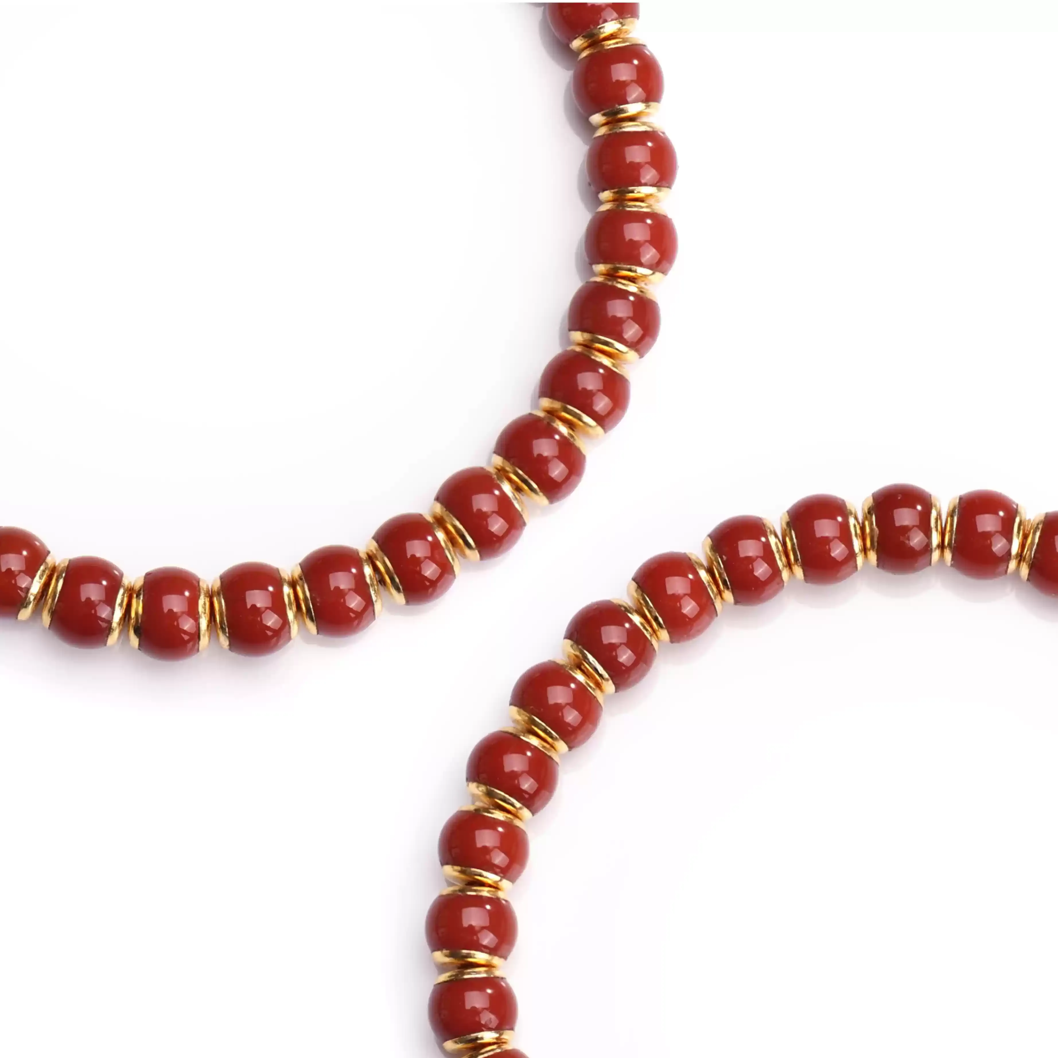 每一顆珠體都散發深邃紅韻與沉穩能量。